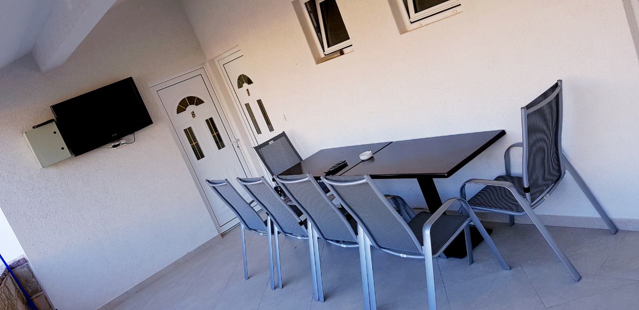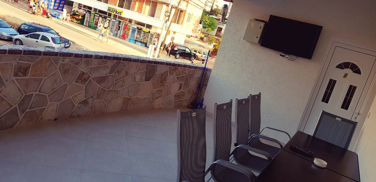 Disponemos de apartamentos dobles, triples, cuádruples y séxtuples con baño, cocina, frigorífico y terraza. Los apartamentos disponen de aire acondicionado con TV. y una terraza con vistas al mar. Los huéspedes del apartamento cuentan con estacionamiento. Distancia de la playa solo 50 m y de la tienda 20 m.